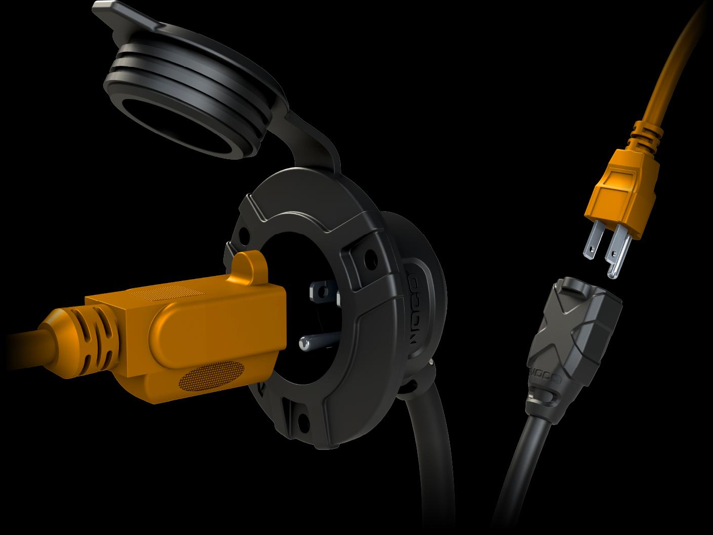 The GCP1EX is an AC Port Plug with an integrated extension cable (12-feet) that offers optimal flexibility and ease of installation. It can mount to the exterior of any vehicle to make the charging port more accessible. Equipped with heavy duty 14 AWG wire to supply power to your device, GCP1EX is rated at 15 amperes and 125 volts for peak performance.