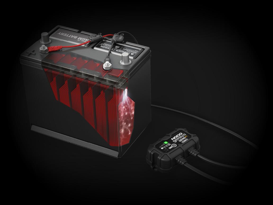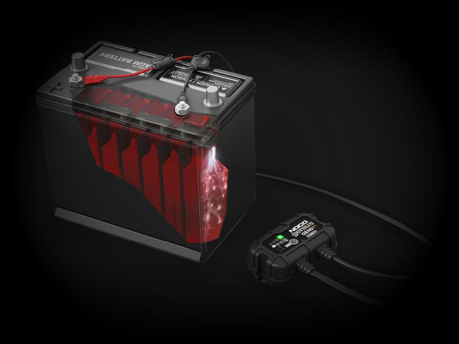 Finally a charger from start to finish that’s completely automatic. No special modes, no technical knowledge required. Genius will safely charge any battery. Detect damaged batteries and intuitively repair them. And actively monitor for long-term battery maintenance and extend battery life. This system allows for continuous operation without user intervention, and zero risk of overcharging your battery.