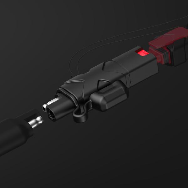 X-Connect SAE Adapter converts an X-Connect connector to a standard SAE connector commonly found on traditional battery chargers.